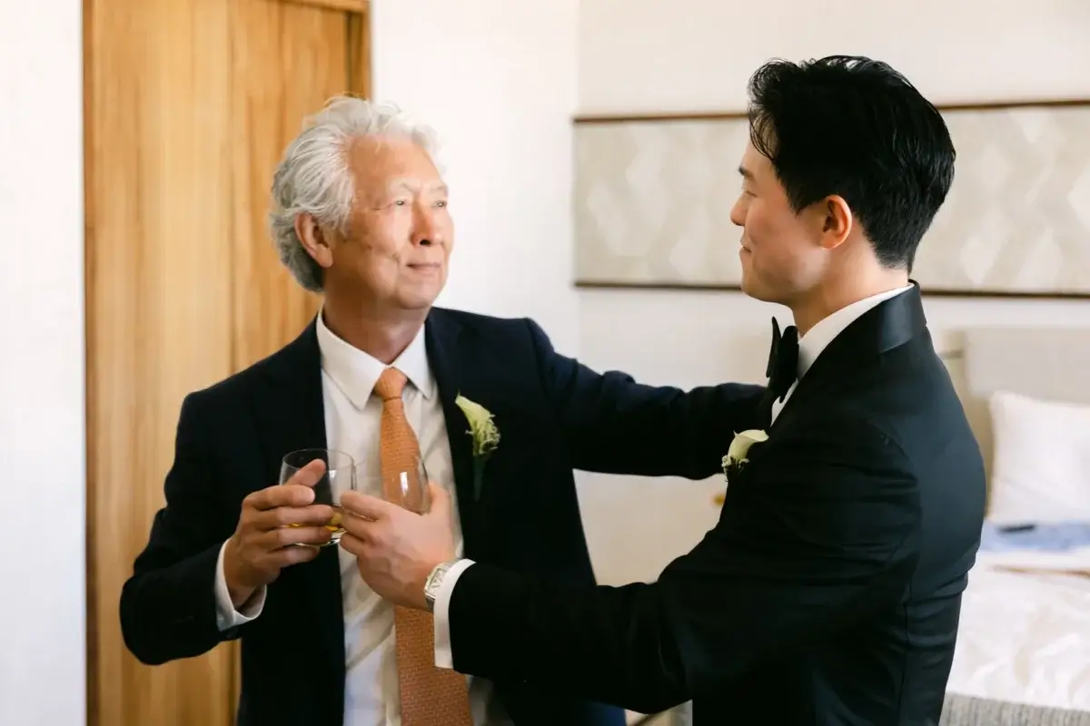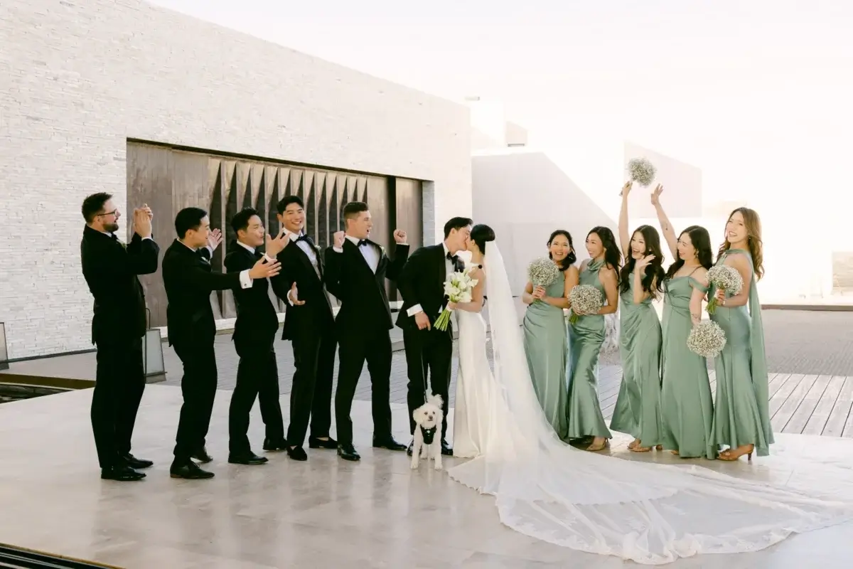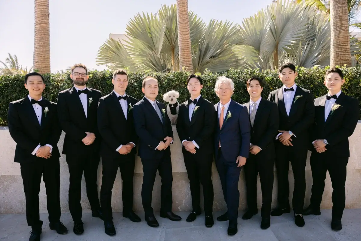 Meanwhile, Todd gathered with his groomsmen, both dads, and the ever-dedicated Bently for a relaxed morning in his own suite. Over lunch and stories, the group reminisced on years of friendship and toasted to what was ahead, a day none of them would soon forget.