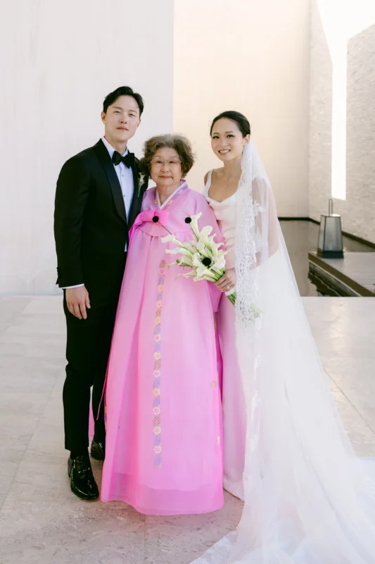 Guests were seated as the soft ocean breeze set the tone. The processional was guided with care by our planning team, and when the ceremony began; led by a dear friend of the couple, it became clear this wasn’t just a ceremony. It was a heartfelt tribute to their journey together. Vows were exchanged in both English and Korean, bridging families and traditions in the most beautiful way. And then, in a moment that made every heart swell, Bently delivered the rings with a focus and elegance we’ll never forget.