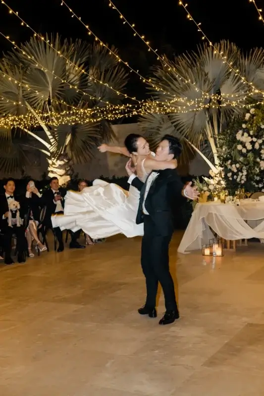Dinner flowed into the couple’s choreographed first dance; a performance full of grace, joy, and personality, and from that moment on, the dance floor never emptied. Beneath a canopy of string lights and the Cabo night sky, the celebration continued, full of laughter, love, and the kind of energy that can’t be staged.